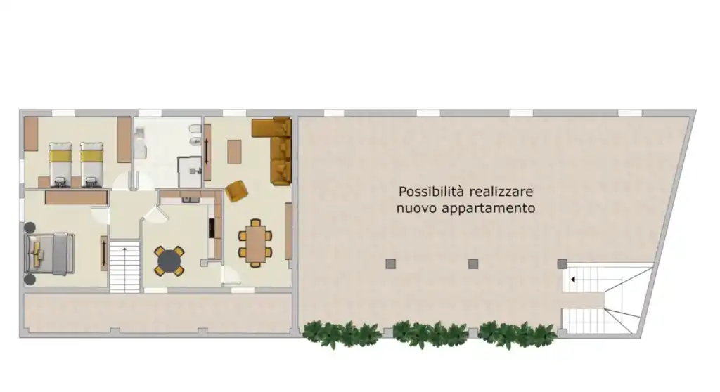 - Investimento: cambiate la destinazione d’uso dei depositi per creare due loft separati da mettere a reddito. Questa soluzione permette di generare un reddito aggiuntivo costante.